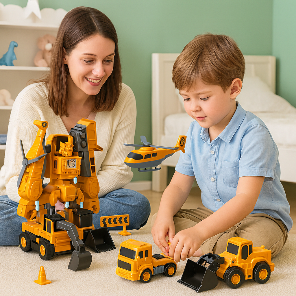 Egal ob Lastwagen, Flugzeuge oder Boote, dieses Set ermöglicht es deinem Kind, einzigartige Fahrzeuge zu bauen. Und das Beste? Die Teile können auch zu einem Superroboter kombiniert werden! Mit den cleveren Magnetpunkten ist das Wechseln zwischen Fahrzeugflotte und Roboter ein Kinderspiel – eine fantastische Möglichkeit, die Fantasie zu fördern.